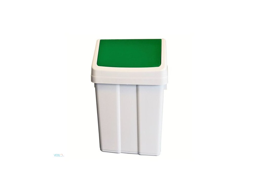 Konstrukce s kyvným víkem účinně chrání okolí před nepříjemnými pachy, zatímco klapka umožňuje snadné zajištění víka v otevřené poloze pro pohodlnější manipulaci. Vhodný jak pro tříděný, tak i netříděný odpad.