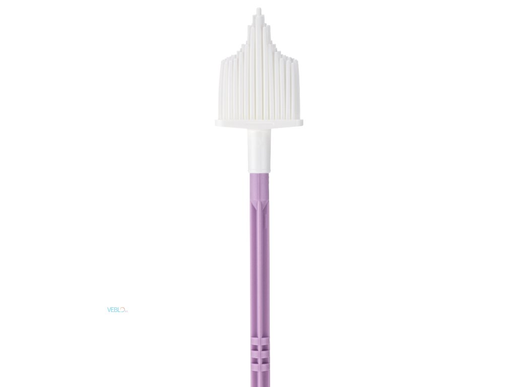 CervexBrush je speciální sterilní cervikální kartáček určený pro precizní odběr buněčných vzorků z děložního čípku (cervikálního kanálu, ektocervixu a transformační zóny). Měkké štětinové hroty minimalizují riziko poškození vzorku a dlouhá rukojeť (18 cm) zajišťuje snadnou manipulaci.