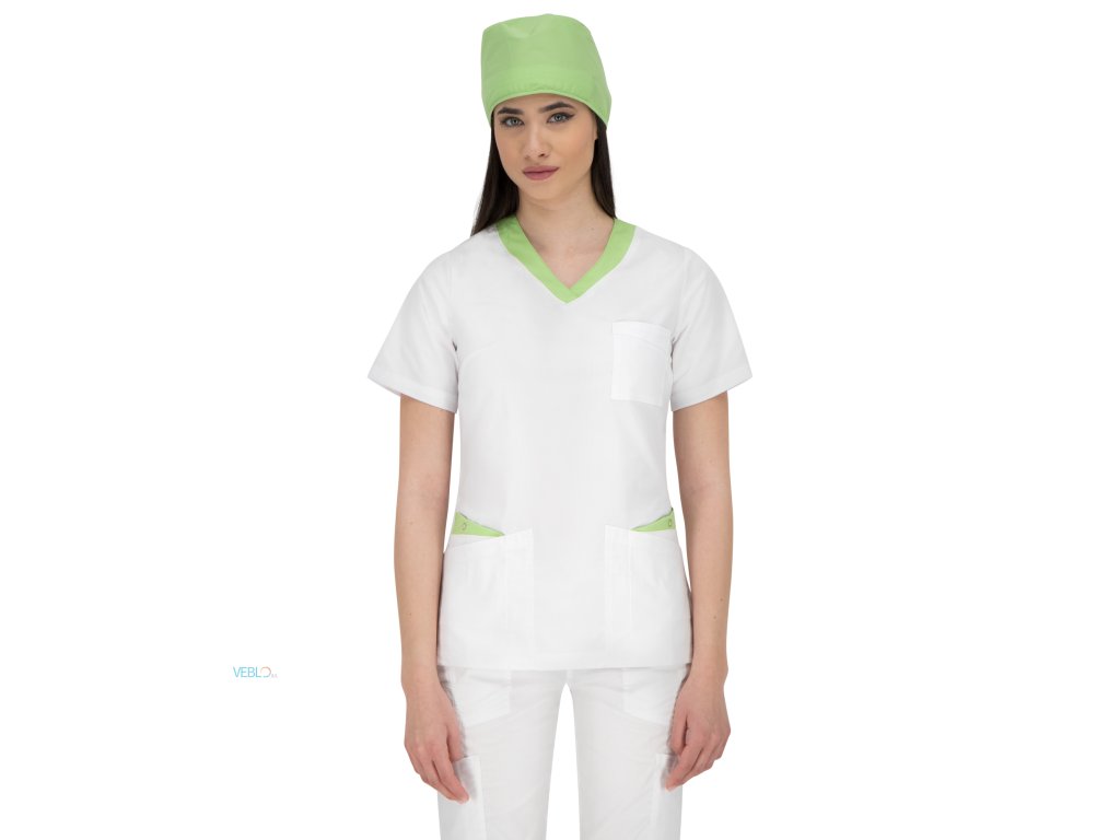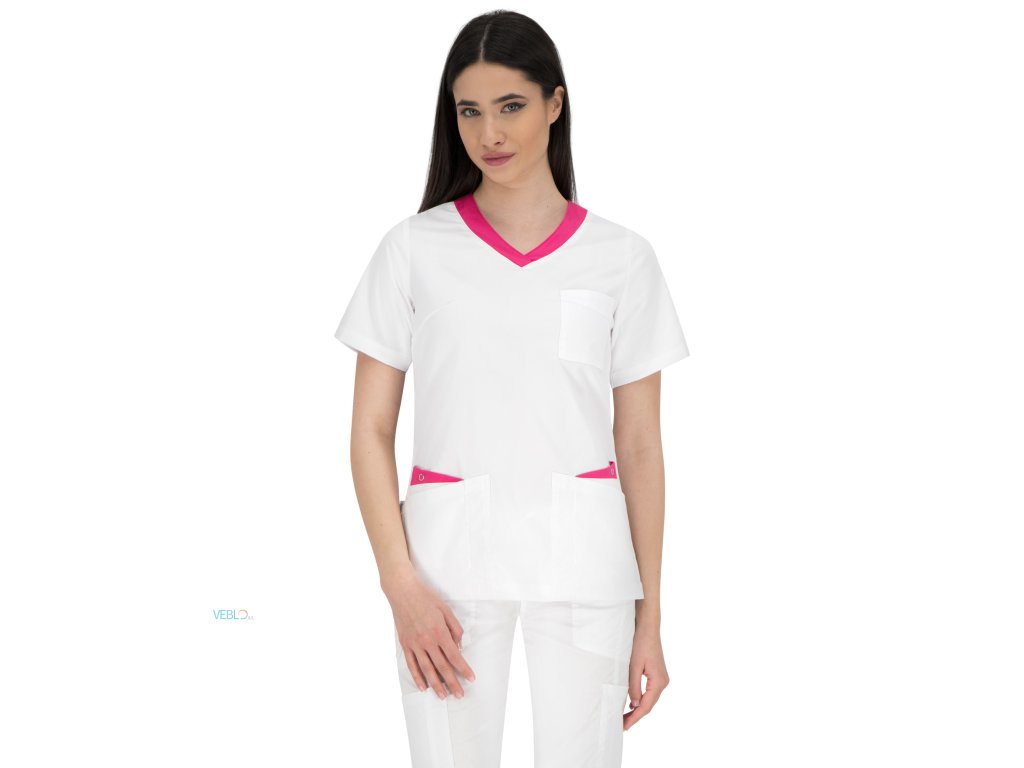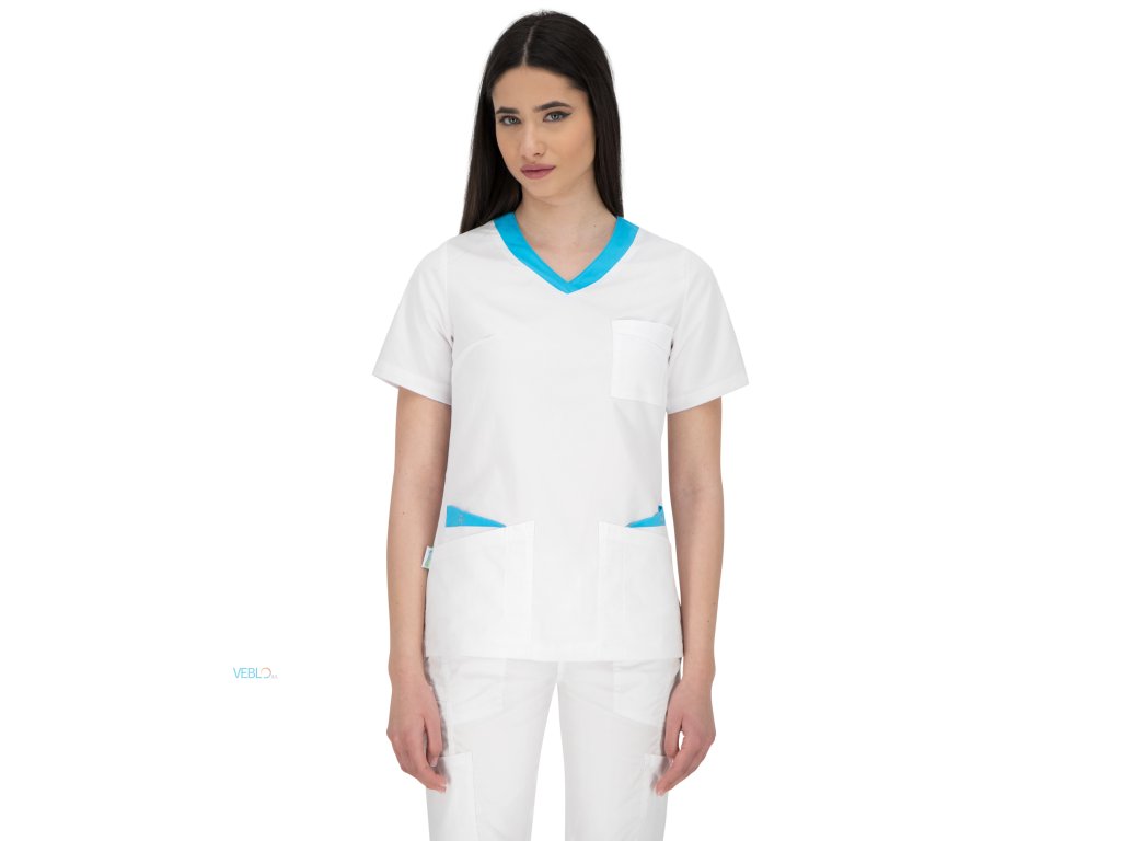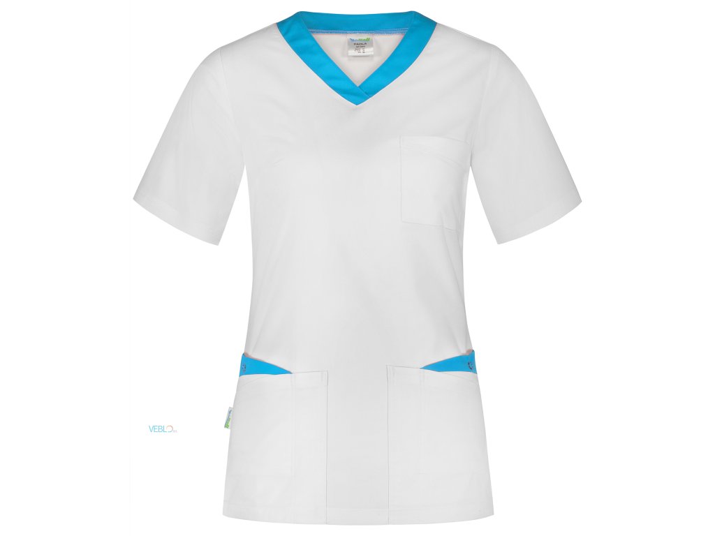 Dámská halena PAOLA v sobě spojuje moderní design s vysokou funkčností. Slim fit střih krásně tvaruje siluetu a kontrastní výstřih do V dodává profesionální a elegantní vzhled. Díky směsi polyesteru, bavlny a elastanu je materiál nejen pružný, ale i pohodlný a odolný – ideální pro celodenní pracovní nasazení. Pět praktických kapes včetně dvojitých spodních kapes s patentkami poskytuje dostatek úložného prostoru pro veškeré nezbytnosti. Perfektně se hodí do zdravotnického, kosmetického nebo wellness prostředí.