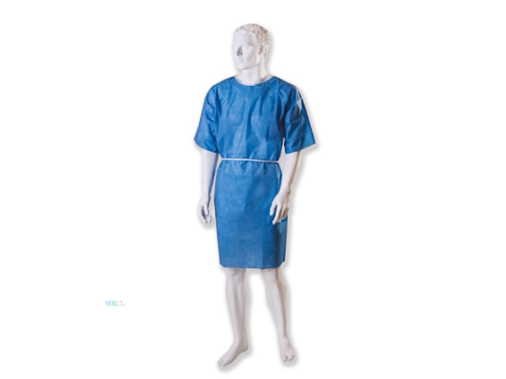 Jednorázová pacientská košile vyrobená z lehkého a odolného netkaného materiálu SMS (33 g/m²).