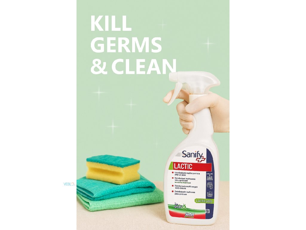 Lactic Zero je víceúčelový přírodní dezinfekční prostředek určený k okamžitému použití. Vhodný na všechny typy omyvatelných povrchů – od kuchyňských linek a stolů až po WC, koupelny a nábytek. Díky účinné látce na bázi kyseliny mléčné si poradí s bakteriemi, viry i plísněmi, a přitom je šetrný k pokožce, materiálům i přírodě.