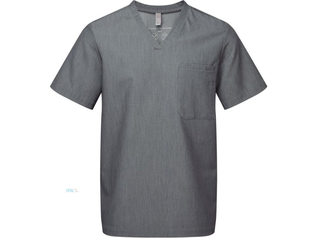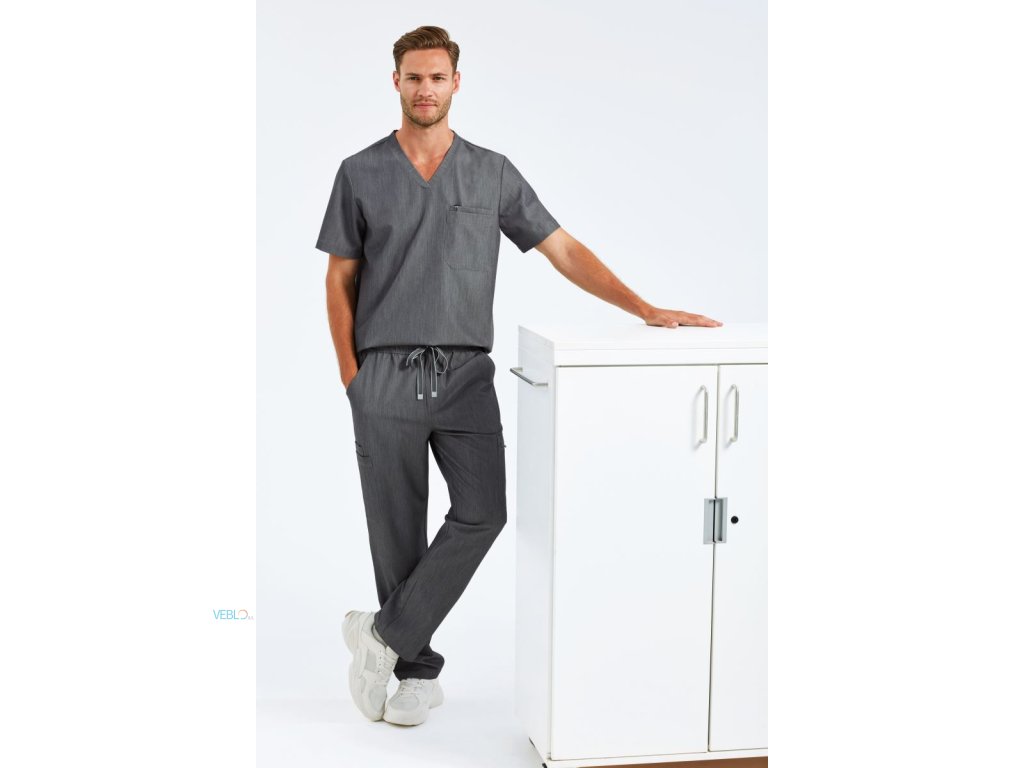Tento pánský kazak je ideální volbou pro lékaře, zdravotníky i terapeuty, kteří požadují od pracovního oděvu maximální pohodlí, odolnost a profesionální vzhled. Vyroben z pevnější, ale stále pružné směsi s vysokým podílem recyklovaného polyesteru, která zajišťuje prodyšnost, regulaci vlhkosti a dlouhou životnost.