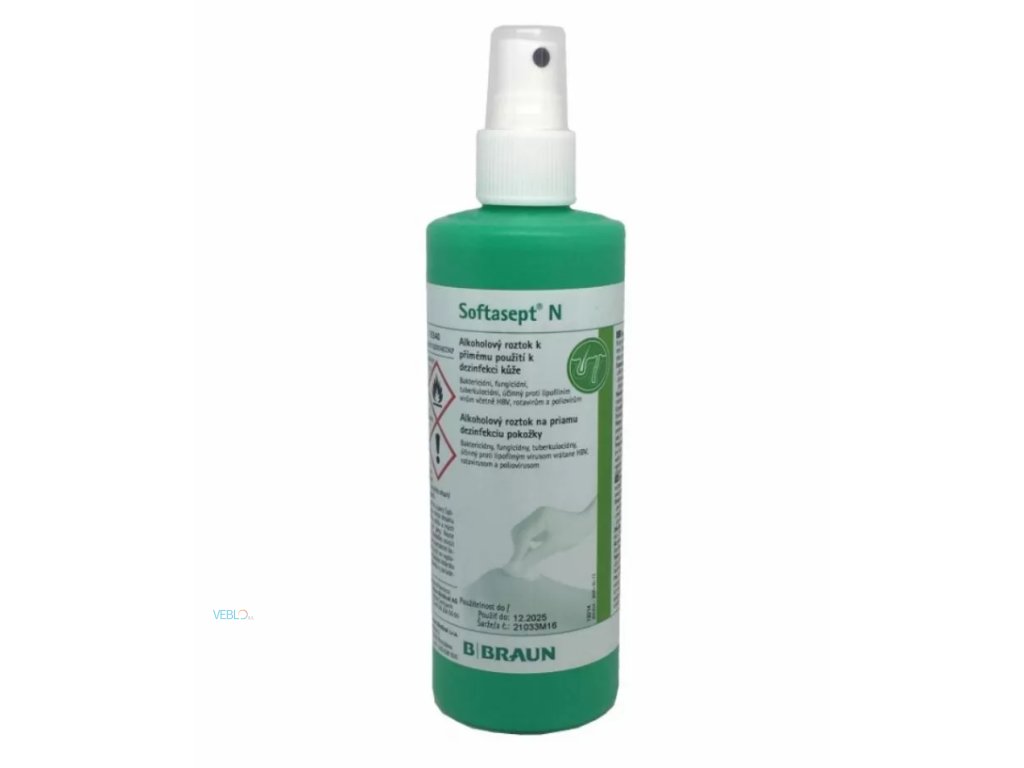 Softasept N bezbarvý je alkoholový dezinfekční přípravek určený k rychlé a účinné dezinfekci pokožky před injekcemi, punkcemi či drobnými chirurgickými zákroky. Díky obsahu ethanolu a propanolu působí baktericidně, fungicidně i virucidně a zajišťuje spolehlivou ochranu proti širokému spektru mikroorganismů.